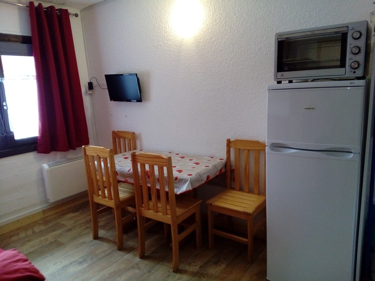 Accogliente monolocale in residenza tranquilla. - Zona notte (letti a castello) - WC separato (mobile sospeso) - Bagno con vasca + colonna doccia - Soggiorno: Zona pranzo (tavolo pieghevole + sedie + panca cassapanca) Angolo cottura (piano cottura a induzione, cappa aspirante, forno a microonde, tostapane, bollitore, macchina da caffè Nespresso...) Un divano letto per 2 persone (140/190) Mobili per ripostiglio - Balcone (tavolo + sedie) Accesso Wifi - 1 box garage chiuso + 1 armadietto per gli sci - Parcheggio esterno