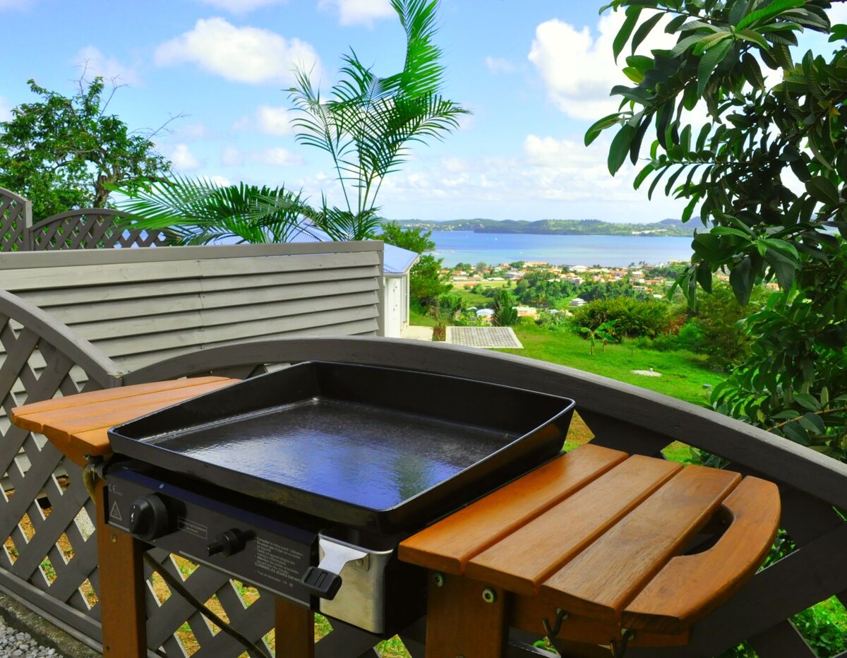 Buongiorno Vi proponiamo il nostro piccolo bungalow molto carino. È adiacente alla nostra casa ma solo l'ingresso principale è in comune. Avrete il vostro spazio privato e indipendente. È composto da una camera da letto di 17 m² con bagno privato e una terrazza di 15 m² con cucina esterna. Gli ospiti possono godere della vista sui pitoni del Carbet sorseggiando il vostro ti punch. Una piccola spiaggia poco conosciuta e affascinante è a meno di 10 minuti a piedi.
