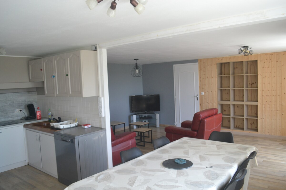 Scopri il paesaggio che circonda questo alloggio di 55m2. Una stanza unica con 2 letti matrimoniali, una cucina e un bagno. Alloggio confortevole, semplice e ristrutturato con cura. Faccio in modo che ci si senta bene ma amici dell'esigenza e del lusso passate oltre. Un ambiente bucolico dove la tranquillità è la parola d'ordine. Mi trovo a 1 ora dal Puy du Fou, a 1 ora dal Futuroscope e a 1 ora dalle paludi, nel mezzo dei 3 siti emblematici che circondano la mia azienda.
