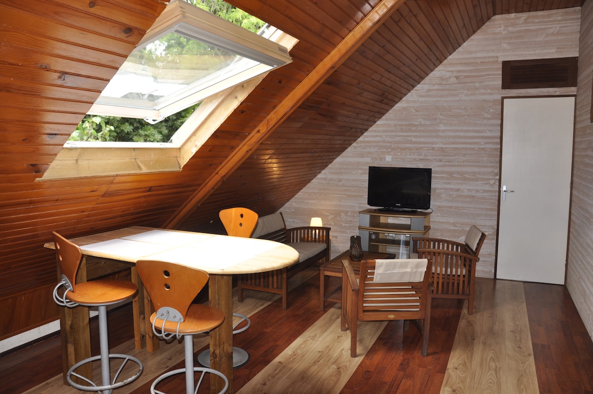 Moderna dependance situata in zona residenziale , tranquilla, a 2,5 km da un campo da golf a 18 buche. Vicino alla pista ciclabile e alla foresta , ai negozi dei ristoranti. Spiaggia raggiungibile a piedi Offre una camera climatizzata con TV, wifi e lettore DVD. Angolo cottura attrezzato (forno microonde, piano cottura a induzione, tostapane, macchina per il caffè elettrica, frigorifero...). Barbecue esterno vicino alla piscina. Libero accesso alla piscina e alla vasca idromassaggio (doccia solare).