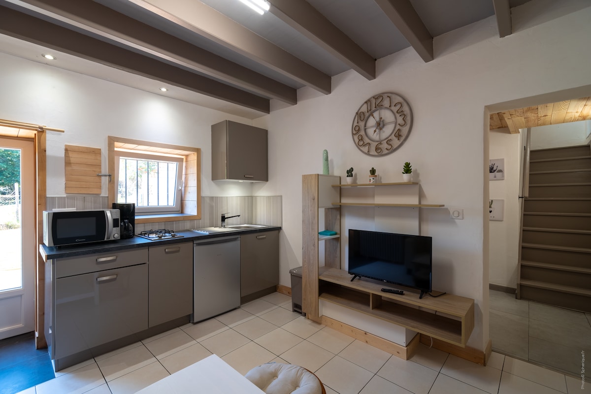 Il monolocale Laïka per 2 persone (4 se bambini piccoli o per una notte!) dispone di un letto matrimoniale a soppalco sotto il tetto spiovente e di un divano letto. Cucina attrezzata (caffettiera, tostapane, bollitore, forno a microonde), bagno con doccia e asciugamano. Seggiolone, giocattoli. Stufa a legna da rifornire. Netflix. Alloggio con piccolo esterno: posto auto, tavolo, barbecue e spa gonfiabile (opzionale - 30 euro la prima notte / poi 20 / e decrescente se soggiorno lungo).