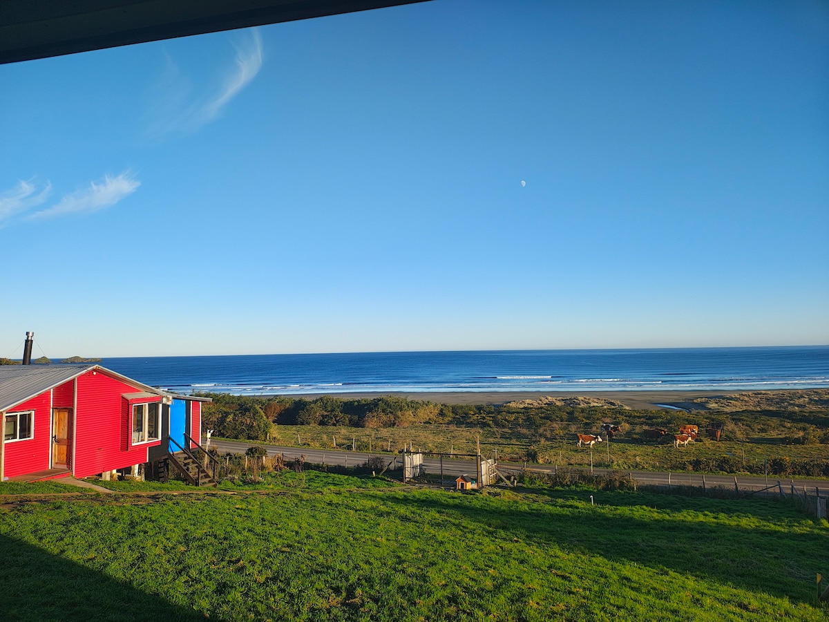 Splendide matrone fronte oceano, con una vista unica e da sogno. Situato nella città rurale di Pumillahue, Ancud, Chiloé. Cabina per 2 2 livelli pax con vista panoramica. Dotato di tavolo per la colazione, macchina per il caffè, bollitore, minifrizer. ( Niente cucina) A soli 5 minuti da Puñihuil Penguin e Caleuche Pier