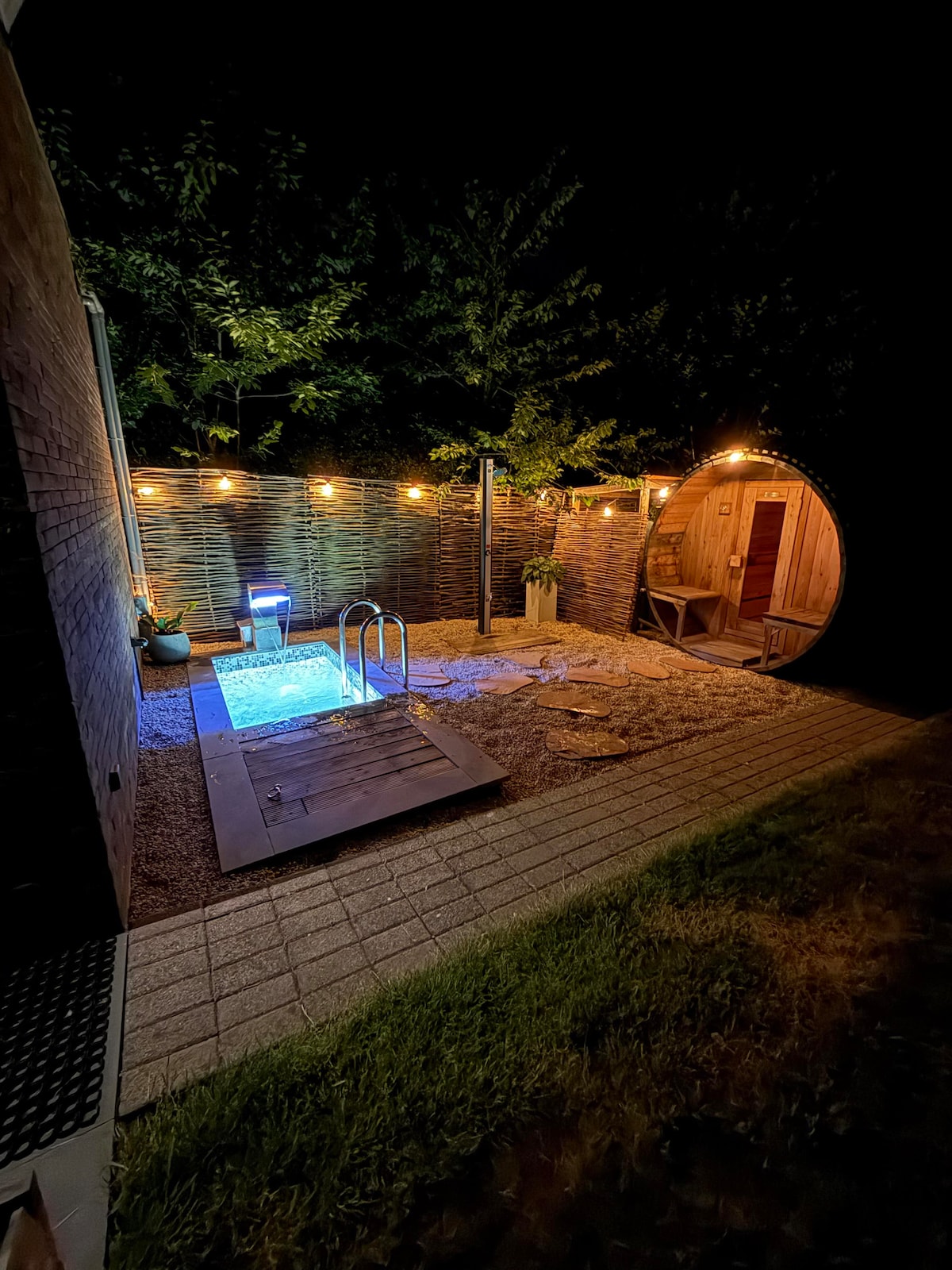 Our assets: A 2,000 m² garden with direct access to the swimming pool. Stay in a guest suite/pool house with Ibiza vibes, including a bar, outdoor kitchen and dining area. Atmospheric evenings with a pellet stove, illuminated pool, hot tub and sauna. A free tandem bicycle available. Central location with easy access to Ghent Antwerp Bruges (also easily reachable by train). A stay that feels pure and relaxing. Our pot-bellied pigs eagerly welcoming you.