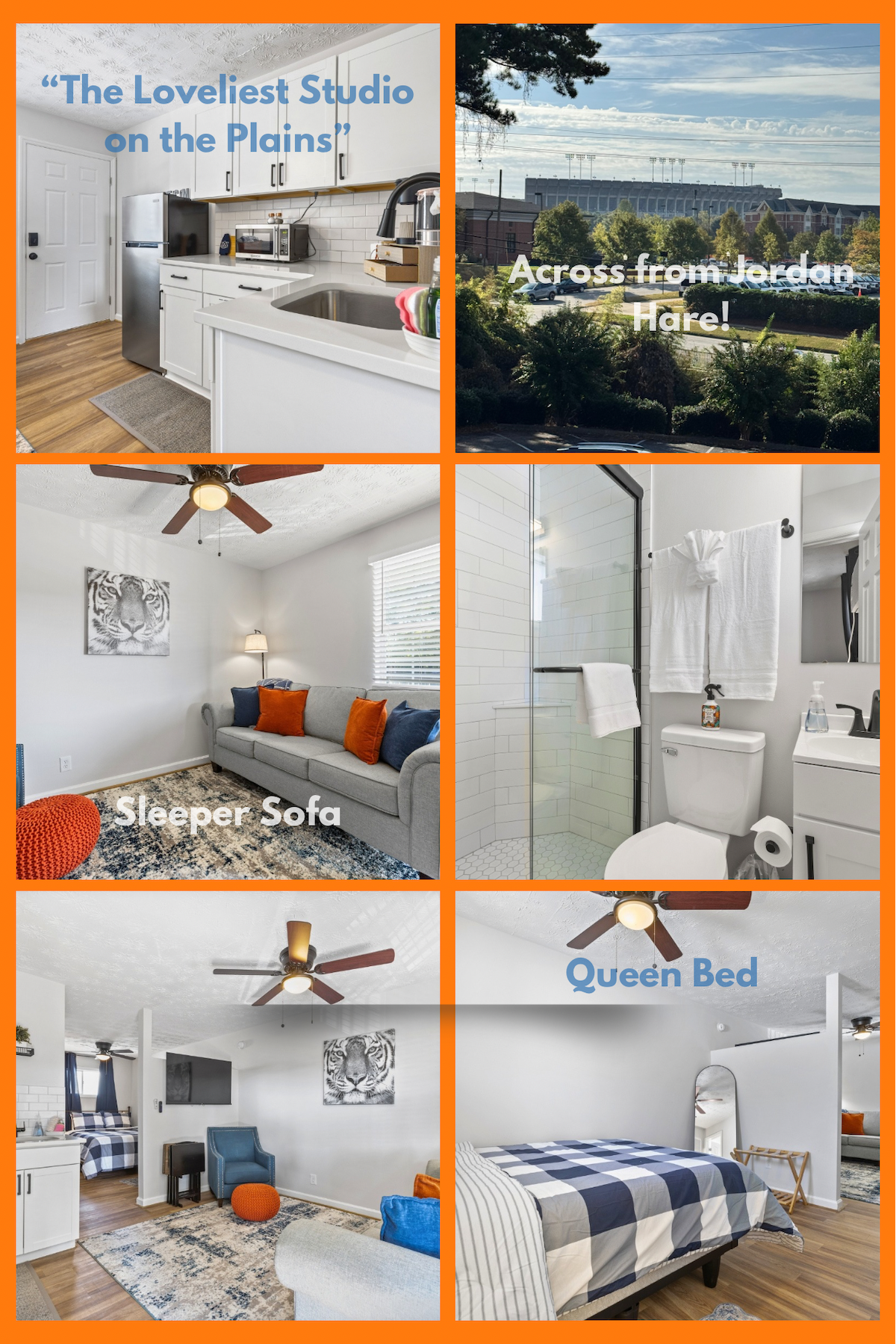 Stay Steps from Jordan-Hare | 1BR/1BA Studio Game Day Ready • Sleeps 4 • Prime Location Modern studio apartment just steps from Jordan-Hare Stadium. Perfect for Auburn game days, campus visits, or a weekend getaway. Highlights: ✔ Queen bed + sleeper sofa (sleeps 4) ✔ Private bathroom ✔ Smart TV + fast Wi-Fi ✔️Free parking for 1 vehicle Whether you’re cheering on the Tigers, visiting family, or exploring The Plains, this studio puts you in the heart of Auburn.