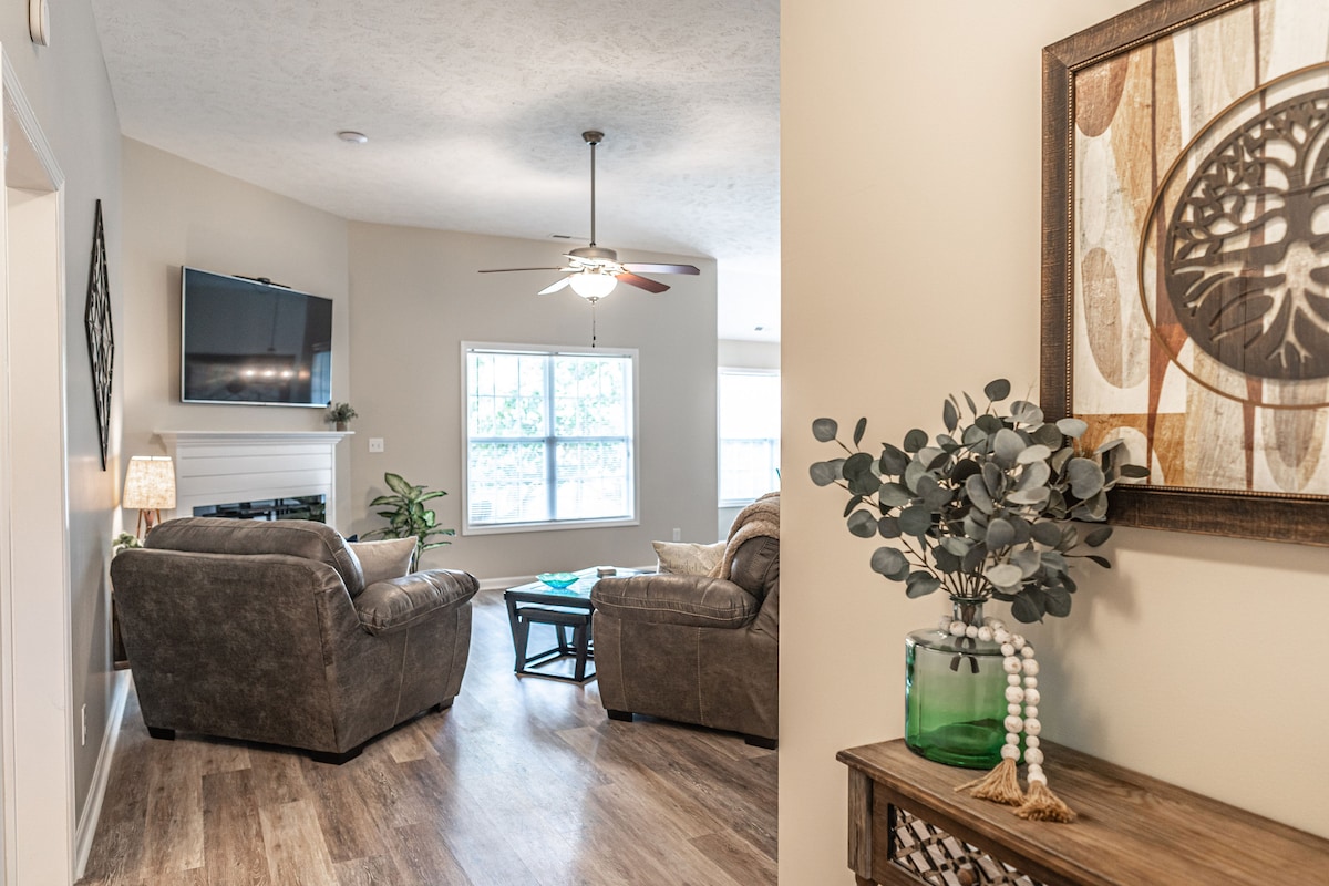 Il Bull's Retreat è uno spazio fantastico con 2 letti king-size e 2 letti singoli, ideale per viaggiatori o vacanze. È situato in posizione centrale in un quartiere tranquillo vicino a Ft. Bragg, Fayetteville e Sanford. È il luogo ideale per ritrovare familiari e amici. Lo spazio abitativo open space comprende una cucina completamente attrezzata, un bancone per la colazione, una zona pranzo e 3 camere da letto e 2 bagni. Puoi rilassarti intorno al braciere. Nota: i proprietari riservano il garage esclusivamente per uso personale; non è accessibile agli ospiti.