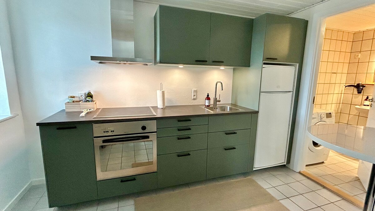 Appartamento di nuova costruzione, 50 m². Include 2 camere matrimoniali, una piccola cucina con frigorifero, macchina per il caffè, mini forno, un piano cottura elettrico singolo, ecc. Soggiorno con divano, zona pranzo e bagno/WC. Ingresso privato, parcheggio proprio davanti alla porta. Situato in posizione tranquilla e idilliaca vicino a Skamlingsbanken, a 10 minuti in auto a sud di Kolding e della E45. Molte opportunità per godersi la natura nella zona, ampio sistema di sentieri con bellissime viste. Vicino alla spiaggia di Binderup, adatta ai bambini.