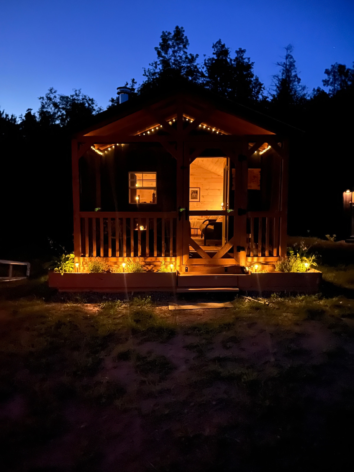 Il "glamping" al suo meglio. Vieni a provare un chalet per tutte le stagioni, nascosto in una posizione molto riservata a Barking Goat Farms, tra Toronto e Ottawa. Sorseggia il caffè del buongiorno nell'incantevole portico schermato e trascorri le serate intorno al falò a guardare le stelle in un ambiente tranquillo. Molte attrazioni locali da visitare, o semplicemente staccare la spina e rilassarsi. Perfetto per una fuga romantica in coppia o una divertente vacanza tra ragazze. Goditi un incontro gratuito con le nostre capre e asini
