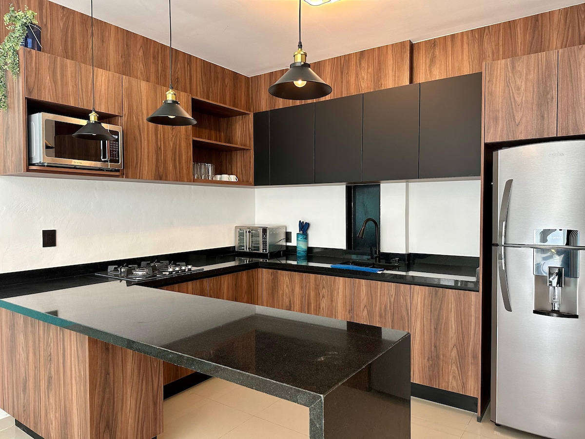 Studio 41. Un espacio acogedor completamente renovado. Esta ubicado a 10 min del Aeropuerto Internacional de Cancún y a 10 min del centro. El departamento se distribuye en 1 habitación con baño completo y un espacio de sala con cocina. La cocina cuenta con lavavajillas, frigobar, estufa eléctrica y toda la vajilla. Es un espacio tranquilo, cómodo para estancias cortas e ideal para estancias largas.