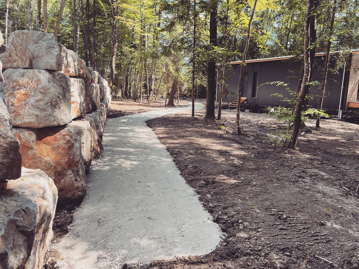 Madame Imagine, Lodge & SPA è una proprietà composta da 4 lodge indipendenti, ciascuno con terrazza e bagno nordico privato. Il posto è stato ideato come una bolla verde intima a 5 minuti di auto dal centro di Epinal. L'atmosfera è moderna e rilassata: luci soffuse, parete verde, sedie a sdraio, vasca da bagno retrò, accappatoi, pantofole e bagno nordico privato riscaldato da fuoco a legna. Mangiamo bene, locali e in servizio in camera! Non vediamo l'ora di darti il benvenuto:)