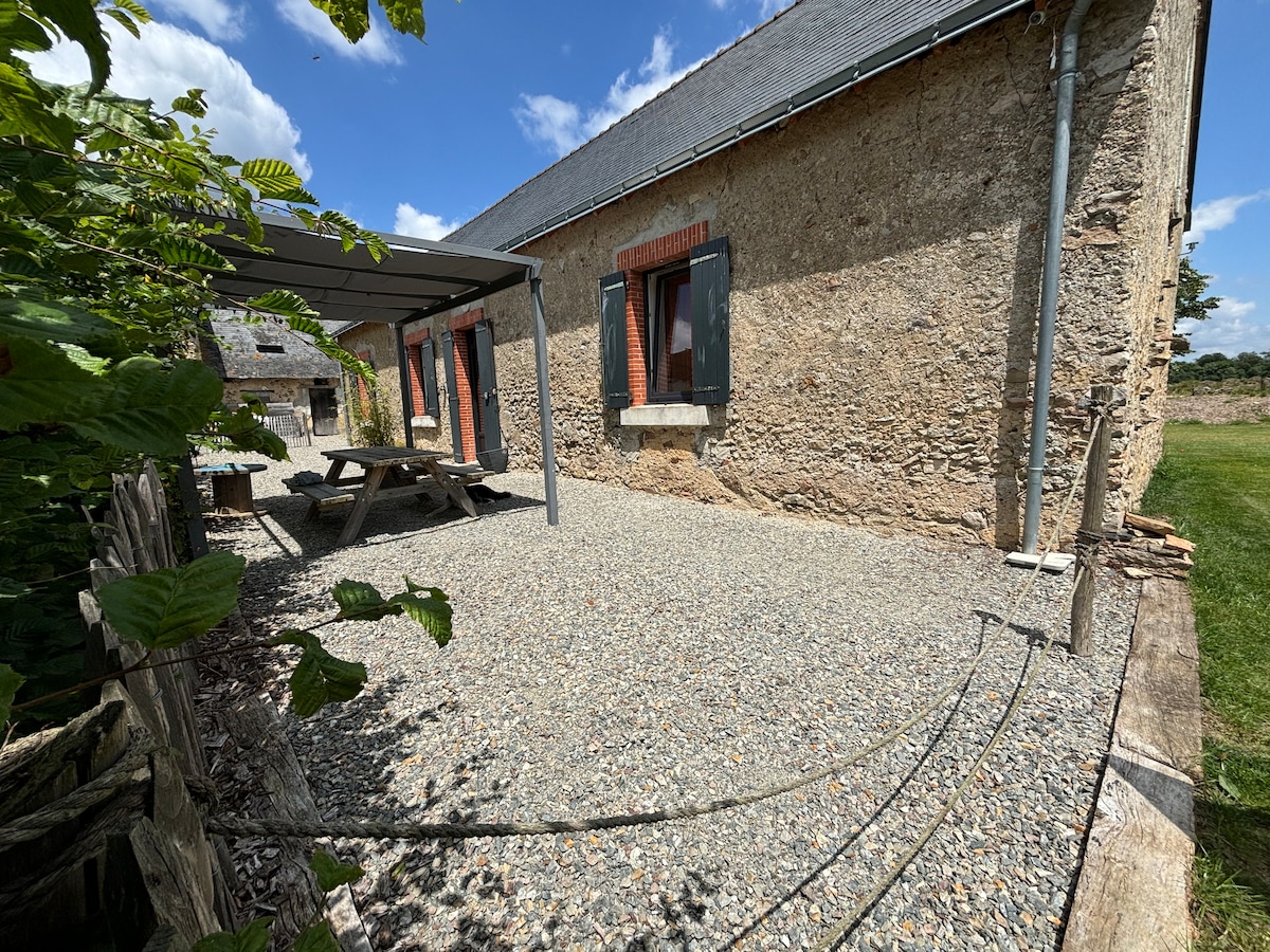 Tra Le Mans e Angers, il Domaine des Fontaines vi accoglie nel suo cottage "Le Cocon". Appena ristrutturata, questa antica casa di campagna con tutti i comfort di 60mq vi accoglie per le vostre vacanze, vacanze in campagna, ritiro e telelavoro nel verde o lavoro nella zona. Le Cocon offre due confortevoli camere da letto, un soggiorno-cucina aperto su una terrazza verde e con vista sul Parc des Fontaines, composto da un roseto, un labirinto vegetale, uno stagno e boschi.