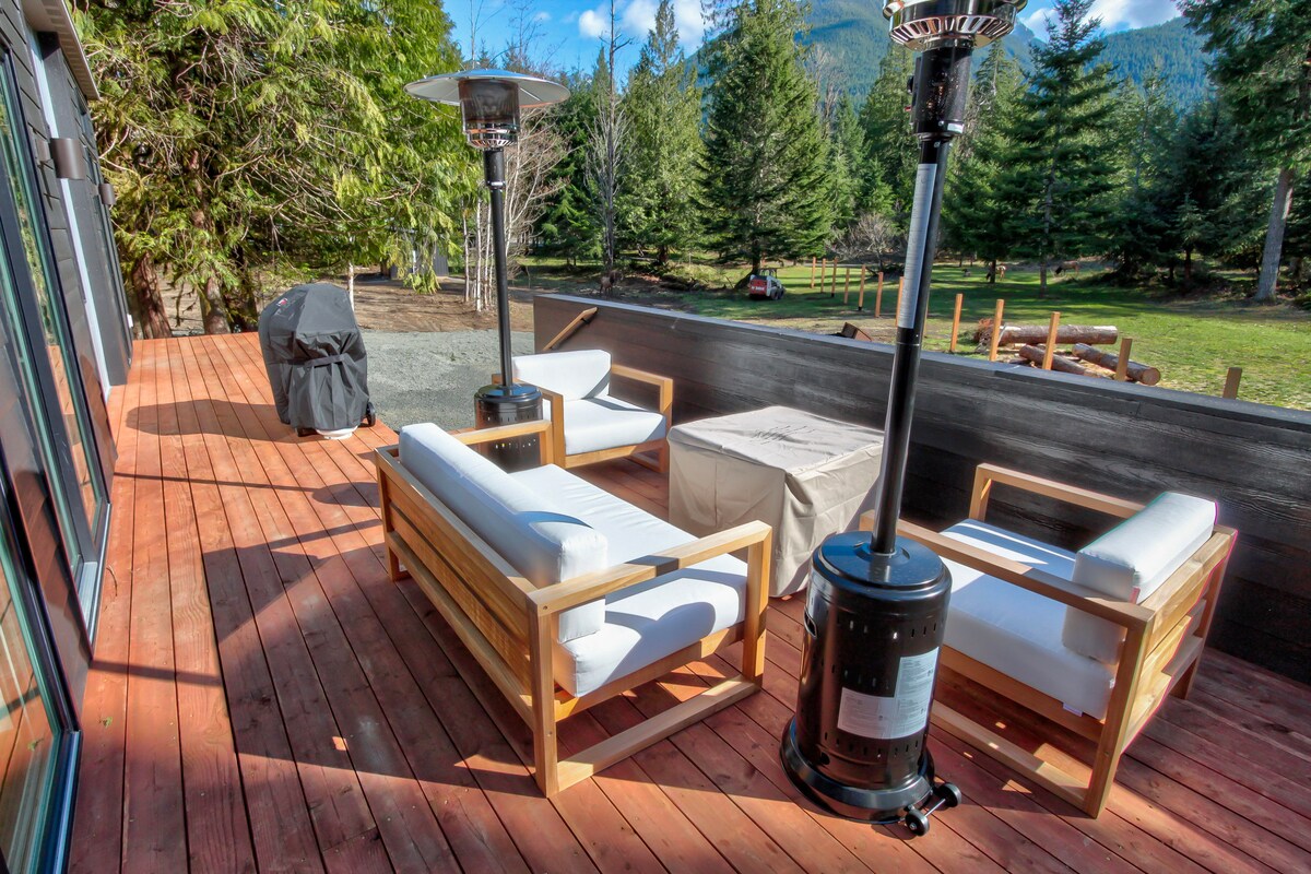 Nuova baita, situata a 5 minuti dalla città e a meno di 20 minuti dal White Pass. La baita si trova in fondo a una strada rurale tranquilla, accanto alla sua gemella. Le finestre a tutta altezza offrono una vista sulle montagne. La baita è dotata di cucina completamente attrezzata, accappatoi, pantofole e una grande lavatrice/asciugatrice. All'esterno troverai la vasca idromassaggio, il riscaldamento a propano, il focolare e il barbecue. Altri servizi includono mobili di alta gamma, wifi, aria condizionata e ampio parcheggio. Contattaci per prenotare entrambi gli chalet e ospitare 10 persone.