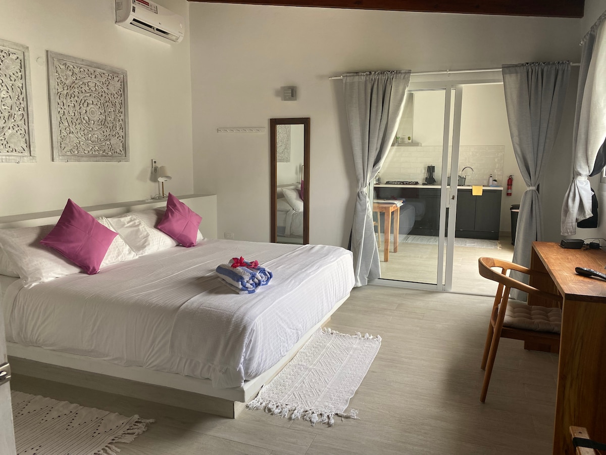 Vuoi soggiornare a 5 minuti a piedi dalle spiagge più belle e vicino ai migliori ristoranti e attività dell'isola? Il nostro monolocale ben situato nel giardino della casa principale può offrirti tutto questo. Camera con aria condizionata, letto a due piazze e una piccola cucina con tutti gli utensili necessari, e parcheggio gratuito davanti al cancello. Abbiamo un altro monolocale per 2 ospiti, per un totale di 4 ospiti. Il link a questo monolocale è https://airbnb.com/h/dushivacationstudio1