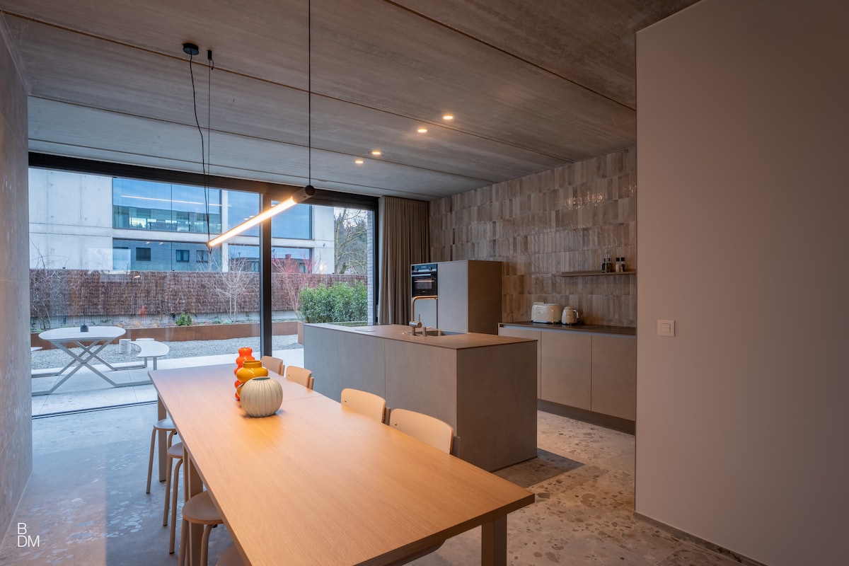 Cette maison à Oupeye offre un cadre lumineux ouvert sur la Meuse. Les couleurs choisies, les textures contrastées et les objets singuliers lui confèrent une personnalité élégante. Les lignes simples et les matériaux francs créent une atmosphère épurée et accueillante, propice à l’inspiration comme au repos. À proximité du centre d’affaires Bord de Meuse (coworking, salles de réunion, salle de sport) et du RAVeL, le lieu est idéal pour travailler au calme et se ressourcer au bord de l’eau.