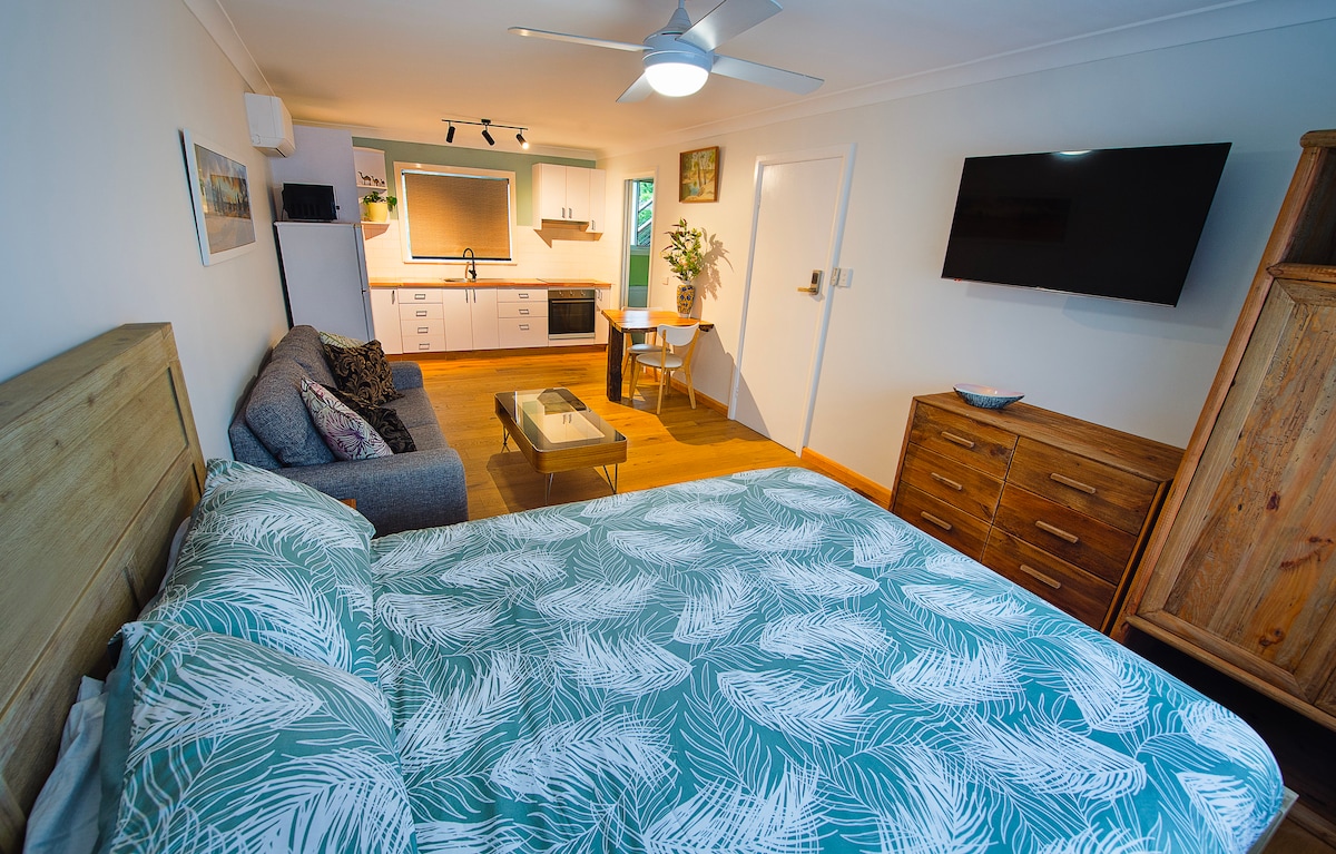 Questo monolocale indipendente, recentemente ristrutturato, è situato sotto una casa con ingresso indipendente, garage e vialetto. Ha tutto il necessario per goderti il tuo soggiorno costiero nella splendida Port Macquarie. Situato in posizione centrale in una strada tranquilla e a pochi passi da negozi, pub, parco giochi/parco ed è a 5 minuti di auto dal centro della città e dalla spiaggia cittadina.