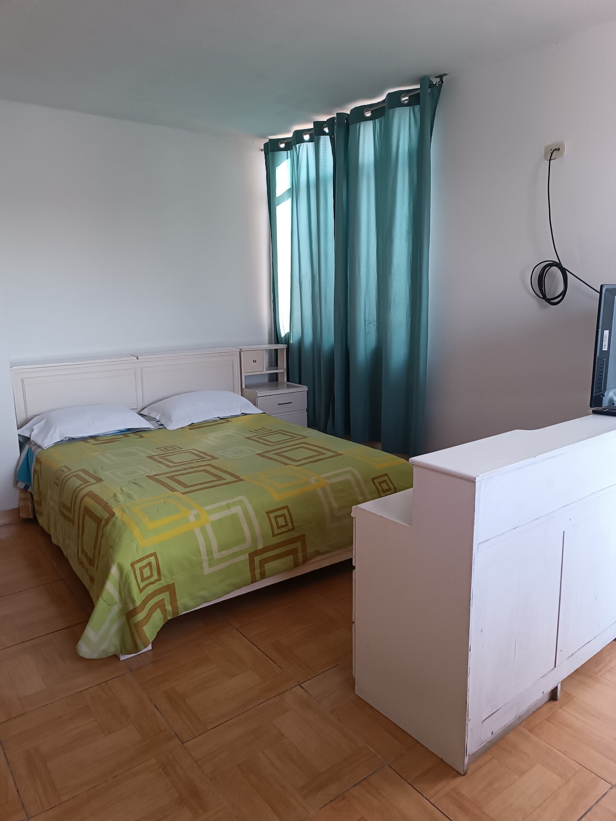 Funzionale Monoambient con letto due letti, asciugamani, ampia finestra, armadio con cassetto, tv, cucina per la preparazione di alimenti di base,angolo cottura, tavolo, sedie, servizi idrici, elettricità, canali nazionali e internet, ha un bagno privato con acqua calda ad uso esclusivo all'esterno della camera. È molto ben posizionato nella zona centrale di Pueblo Libre , un ingresso indipendente.