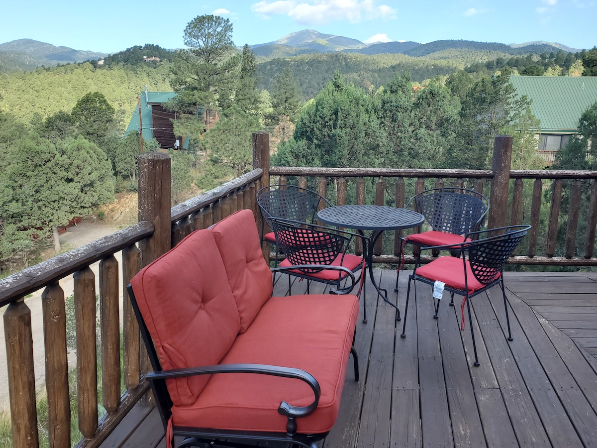 Lassie's Lodge - Great views and a Hot Tub! Our backyard is the Lincoln National Forest. Enjoy the fresh mountain air from a large wrap around deck. The deck has 3 latching gates for your 4 legged friends!