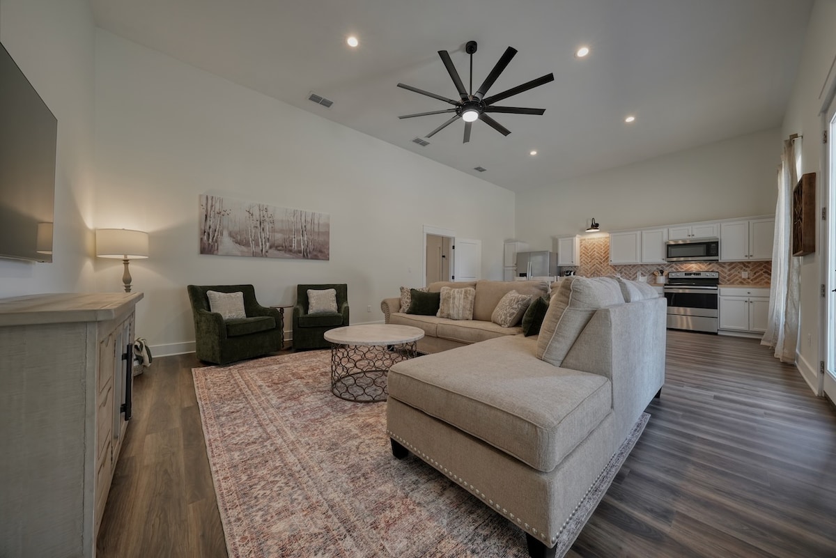Porta tutta la famiglia, incluso l'animale domestico (senza costi per animali domestici), in questa bellissima nuova casa con tanto spazio per rilassarsi. Questa casa include una grande TV in soggiorno per film, giochi, internet e una cucina gourmet per preparare i pasti insieme. Crea nuovi ricordi o semplicemente goditi il tempo insieme. Le istruzioni dettagliate, incluso il tuo codice di blocco, saranno condivise con te dopo la prenotazione.