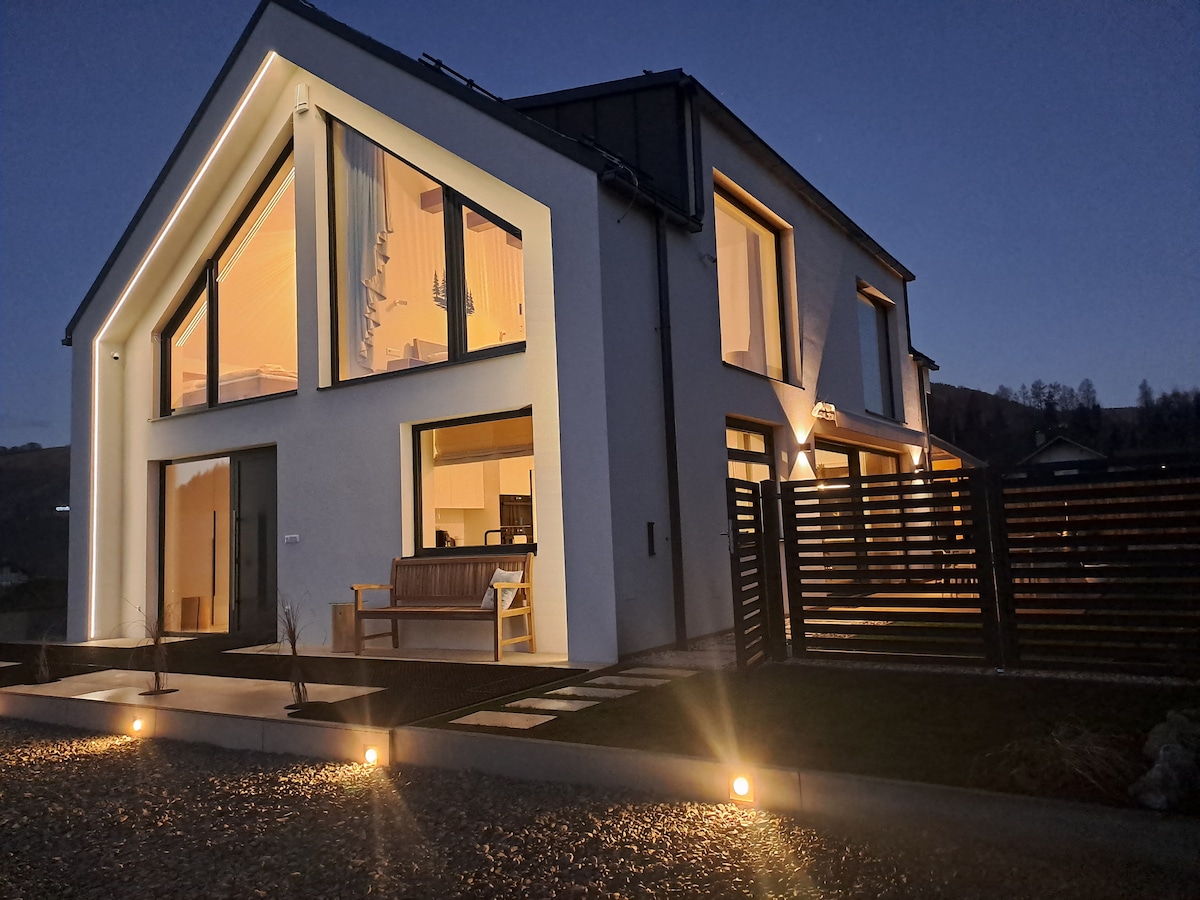 Ricordi indimenticabili ti attendono nella nostra casa a forma di nave! Goditi una vacanza all'insegna dello stile nella nostra splendida casa a forma di nave, progettata dall'architetto Peter Abonyi. Rilassati nelle 4 camere da letto con bagno interno e goditi l'ampia zona giorno, perfetta per famiglie e amici. I bambini apprezzeranno l'area giochi con giocattoli e lo studio all'ultimo piano con vista panoramica. Esplora la bellezza di Liptovská Mara oltre il ponte e crea ricordi indelebili. Prenota ora!