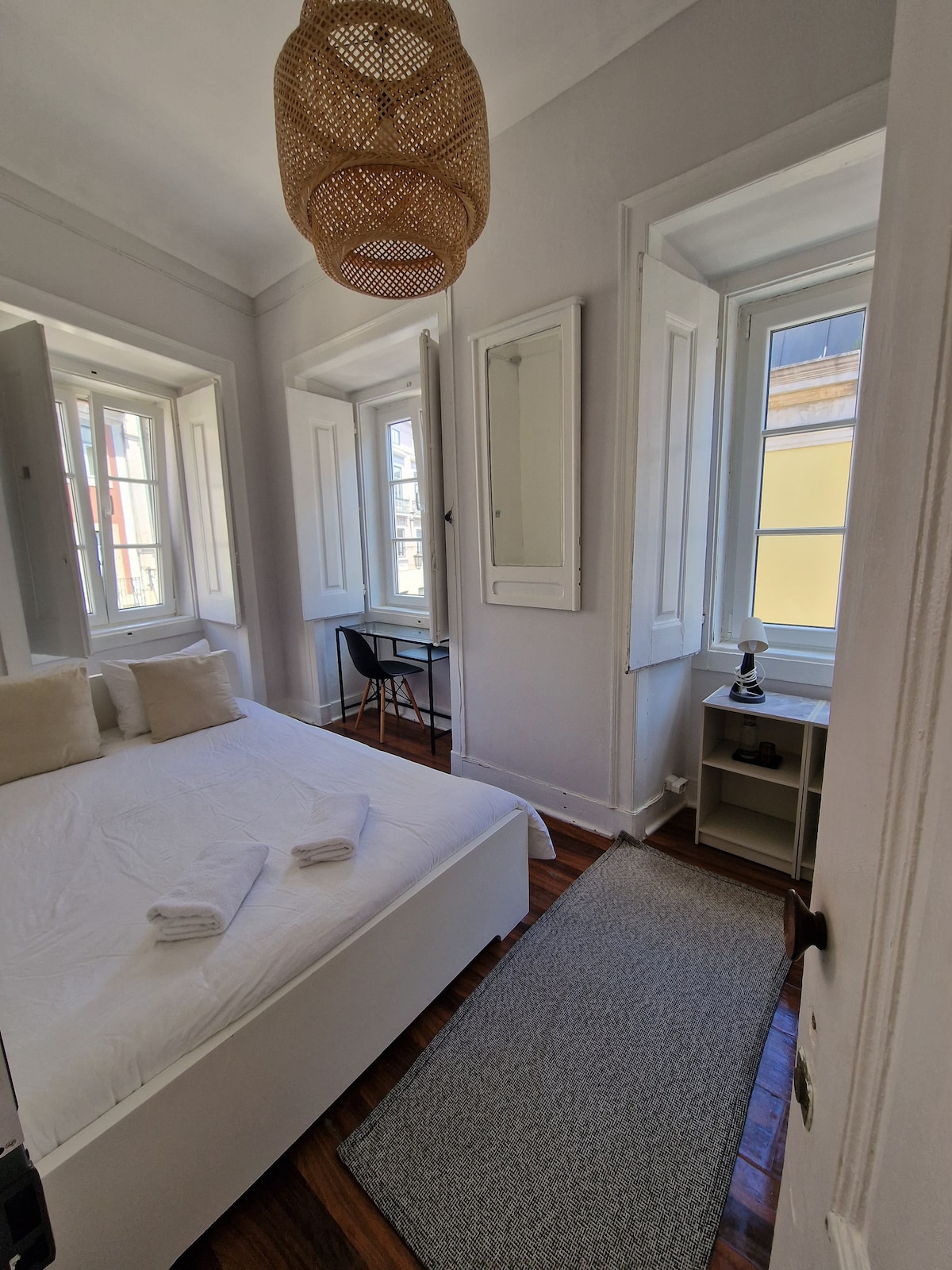 Affascinante camera nel centro di Lisbona con bagno privato e balcone, in un appartamento tranquillo e pulito che ho ristrutturato con amore. Ideale per studenti, professionisti o ricercatori in soggiorno temporaneo. Lo spazio include una smart TV, pavimento riscaldato e aria condizionata. Non fornisco l'accesso alla cucina o al soggiorno, ma sul balcone troverai un piccolo frigorifero e un lavandino per conservare e preparare pasti leggeri. Letto matrimoniale (1,60 m) + divano letto (1,20 m).