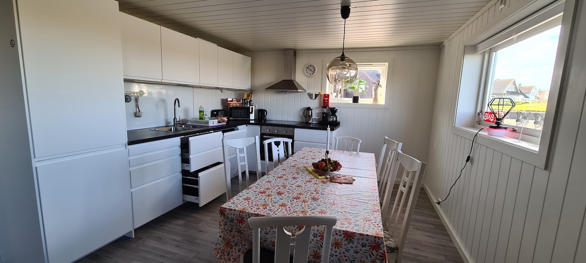 Affittiamo la nostra casa funkish a Viga, a Spind. La casa è stata costruita nel 2018 e ha uno standard elevato. Al piano terra si trovano un disimpegno, una lavanderia, una sala TV con divano letto, un bagno e tre camere da letto, tutte arredate con 2 letti singoli. Al secondo piano c'è una grande cucina, un soggiorno, un tavolo da pranzo, una zona TV, una camera da letto con letto matrimoniale e un ampio bagno collegato a questa camera da letto. All'esterno c'è un'enorme terrazza con un sacco di spazio abitativo, diverse aree salotto, jacuzzi e braciere, e una bella vista!