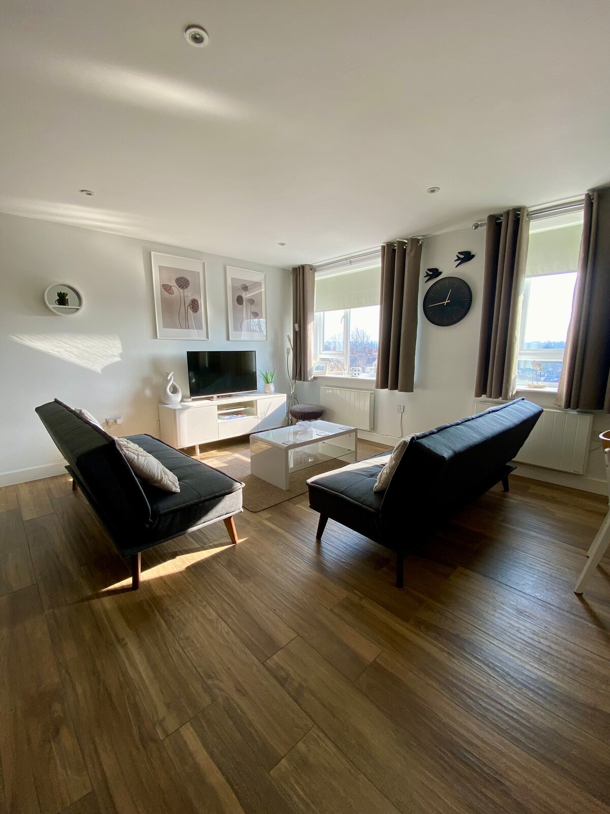 ROOFTOPs è un luminoso appartamento con trattamento alberghiero situato in una posizione perfetta per chiunque visiti Milton Keynes/Bletchley. L'ampio salotto/sala da pranzo è ideale per rilassarsi o socializzare. Netflix e wifi gratuiti inclusi. Asciugamani, shampoo e altro ancora sono forniti. La camera da letto ha armadi a muro e un comodo letto king-size con materasso a molle insacchettate. Se soggiornano tre persone, c'è un divano letto nel salotto. È disponibile il self check-in. Tieni presente che c'è una telecamera di sicurezza fuori dalla porta d'ingresso.