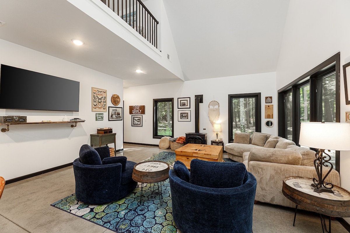 This private slice of heaven has all the rustic Up North feels, with just the right touch of urban chic. Adjacent to 100s of acres of state land, this secluded spot has everything you need to unwind, and let go. Enjoy the hot tub, fire pit and outdoor deck seating. Bask in glorious solitude among the trees and under the stars. All guests must be 25+ unless accompanied by a parent/guardian. Please find us at goldenswanmgt to see all our properties and our lowest rates.
