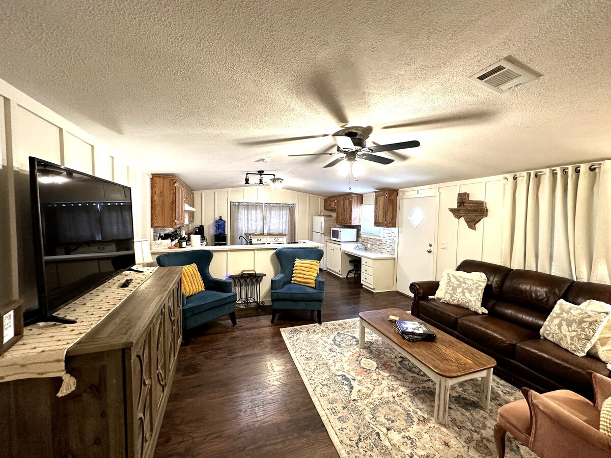 Questa è una casa intera meravigliosa e affascinante con porte ad arco e pavimenti in legno risalenti a mezzo secolo fa. Due ampie camere da letto con armadi a forma di nave ospitano letti comodi e puliti con molti cuscini in questa tranquilla casa di Levelland. La lavatrice e l'asciugatrice sono nel garage se hai un soggiorno più lungo. Il cortile ha un sacco di spazio per cucinare delle bistecche e godersi le belle serate e i cieli stellati. C'è un ampio parcheggio per rimorchi e camper se sei qui per un evento al The Mallet.