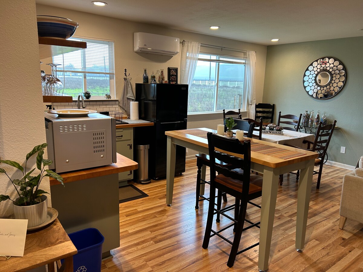 Dimentica ogni preoccupazione in questa ampia oasi di serenità. Situato nella splendida regione vinicola di Livermore, a soli 3 km dal centro. Con sentieri pedonali/ciclabili proprio dall'altra parte della strada e due cantine raggiungibili a piedi, non dovrai andare lontano per goderti il tuo soggiorno qui. Questo spazioso cottage con letto matrimoniale grande (e letto a scomparsa queen-size) è perfetto per trascorrere momenti di tranquillità. La maggior parte dei giorni si possono vedere cavalli e mucche appena fuori dalle finestre, con gufi che tubano e uccelli che cinguettano, per un'atmosfera di campagna.