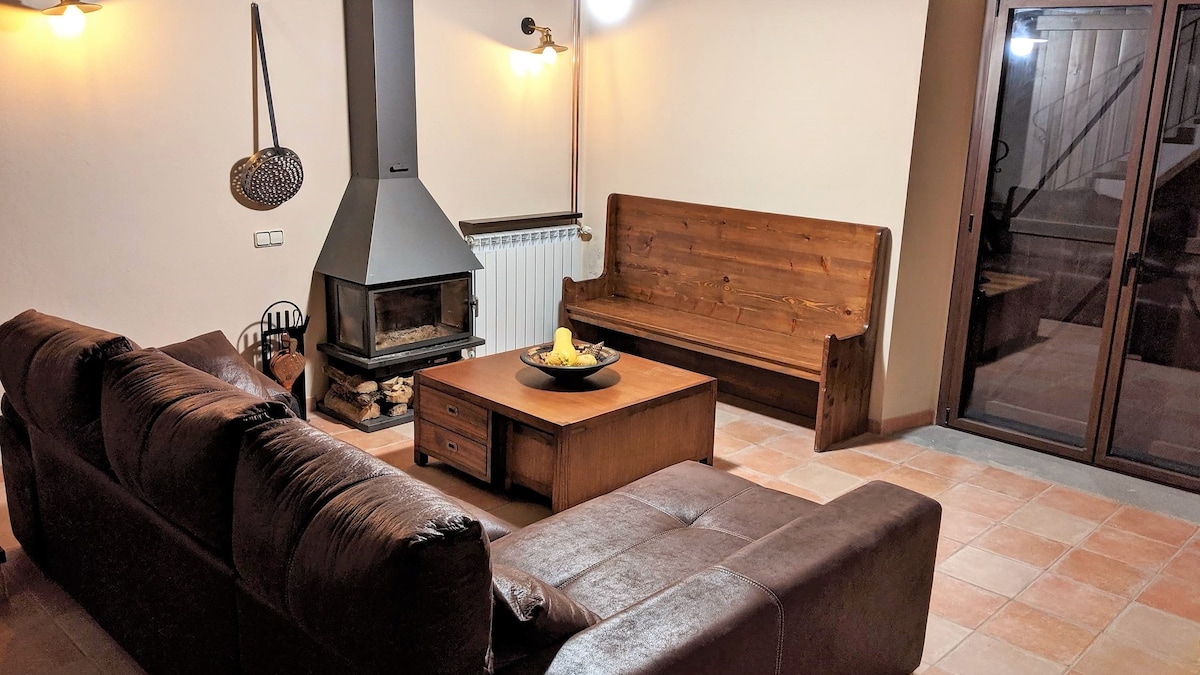 La Era de Cal Peró è una casa a due piani con capacità per due persone. Al primo piano si trovano la camera da letto e il bagno. Una scala interna conduce al secondo piano, dove si trovano il soggiorno, la sala da pranzo e la cucina. Il soggiorno ospita attrezzature audio e televisione. Potete mettere una pieghevole nel caso in cui andate con un bambino. Due ampie finestre permettono di raggiungere una grande terrazza con tavolo da giardino e sedie che si affacciano su tutta la valle.