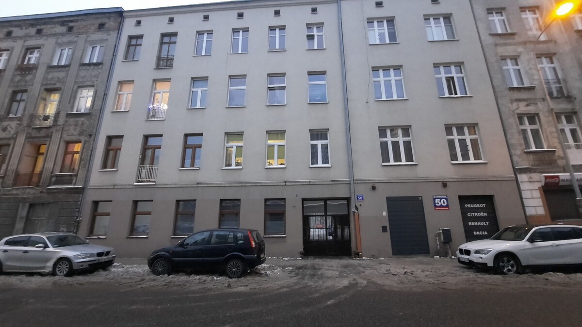 L'appartamento si trova nel cuore della città, vicino alla Galeria Łódzka, al 2 ° piano. C'è parcheggio gratuito, aria condizionata, wifi, TV e bagno, angolo cottura, camera da letto e ampio soggiorno. L'appartamento è situato in un'ottima posizione proprio accanto alla Galeria Łódzka, a 300 metri da via Piotrkowska. Con facile accesso in auto o con mezzi pubblici, un rapido accesso a negozi, ristoranti o bar situati nel centro appartato.
