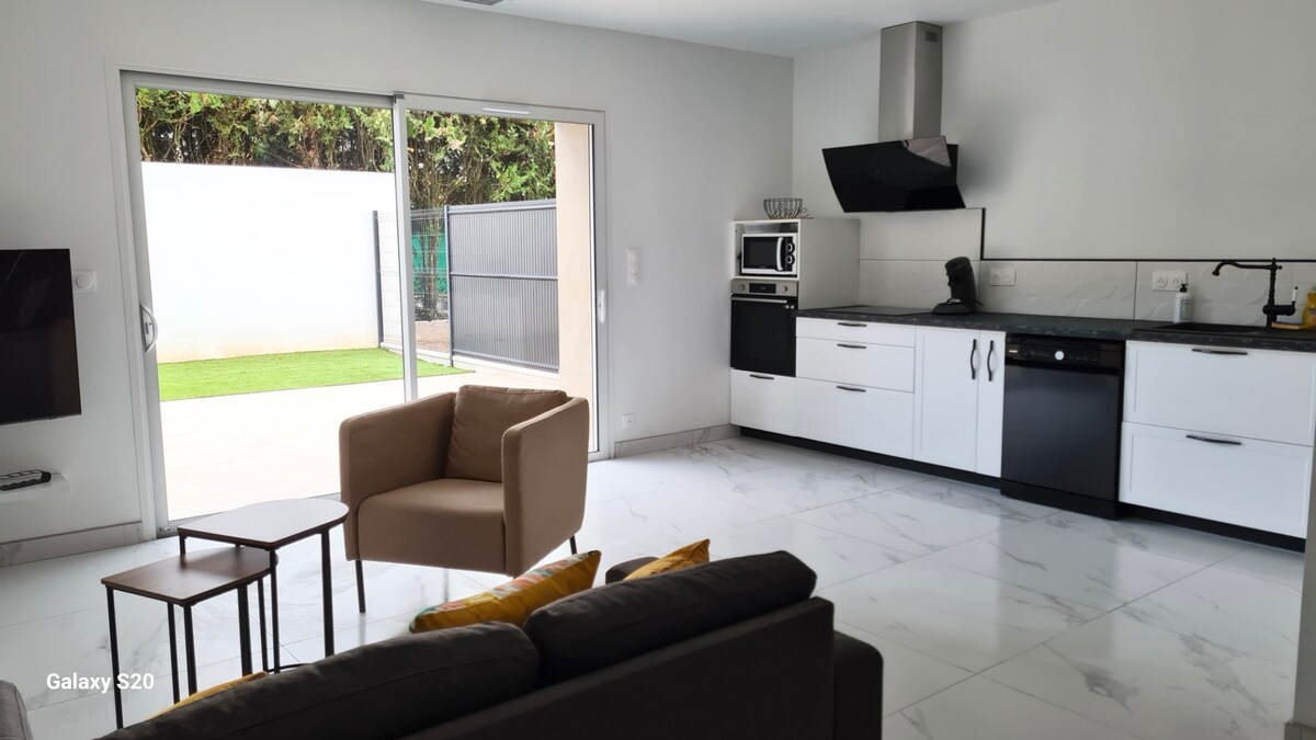 Benvenuti nella tranquillità per godere della natura e dei grandi spazi di questa casa completamente ristrutturata in un angolo di paradiso, un giardino verdeggiante in riva al fiume vicino ad Albi. Sarete accolti comodamente in questa casa di 100mq composta da un ampio soggiorno molto luminoso, due camere da letto e due terrazze. Gli ospiti possono usufruire di una cucina attrezzata, bagno, accesso wifi. Vi aspettiamo con piacere. A presto. Stéphane