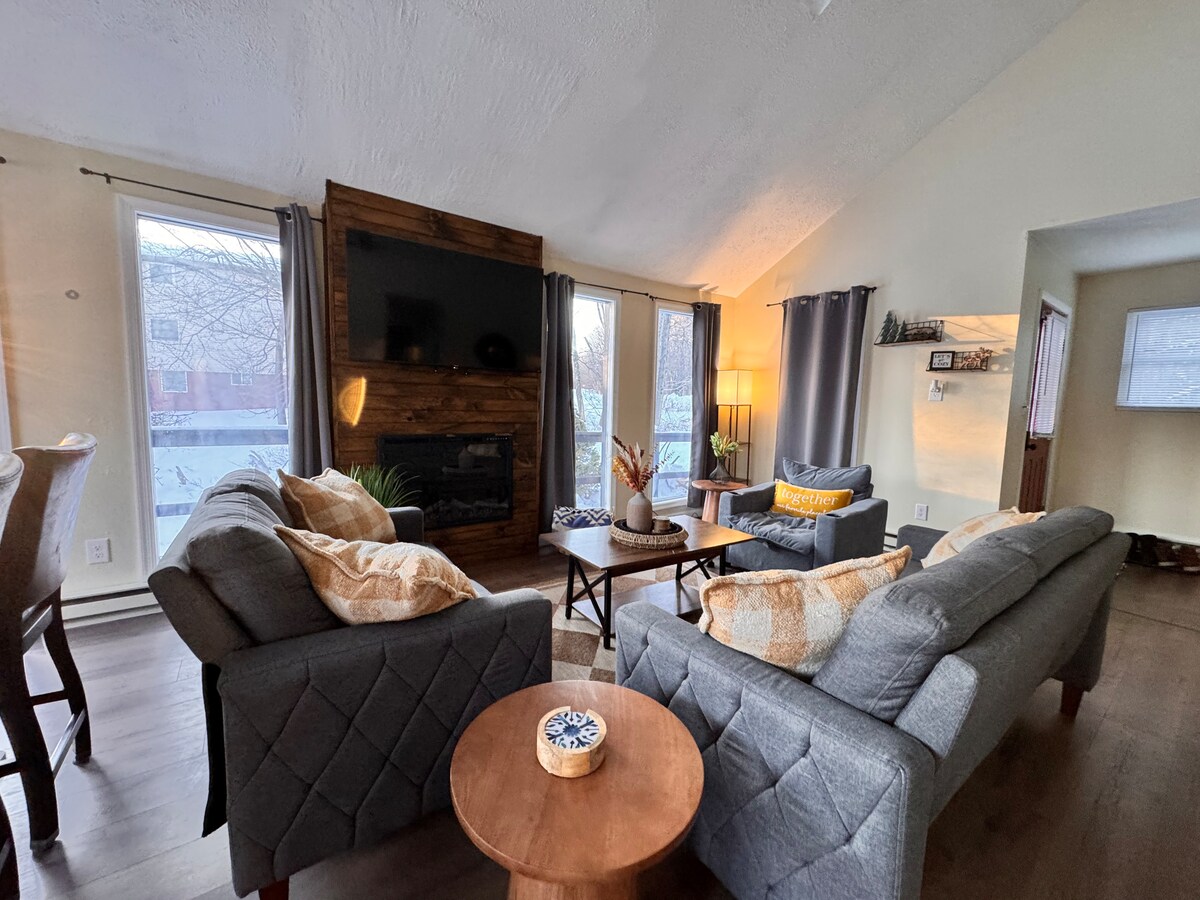 Fuggi dalla routine e soggiorna nel nostro chalet moderno, situato proprio sul lago, con kayak e canoe. La nostra cucina moderna è attrezzata per cucinare un pasto da chef e banchettare a un tavolo rustico da fattoria. Rilassati accanto al caminetto scoppiettante. Concediti una sauna finlandese dopo un'escursione o una giornata sugli sci. La luce naturale, i pini e la vista panoramica sul lago lo rendono un luogo tranquillo per godersi un po' di natura. Il comfort ti aspetta con lenzuola in cotone 100%, legna da ardere fornita in loco, 4 Smart TV e caricabatterie SPAN EV.