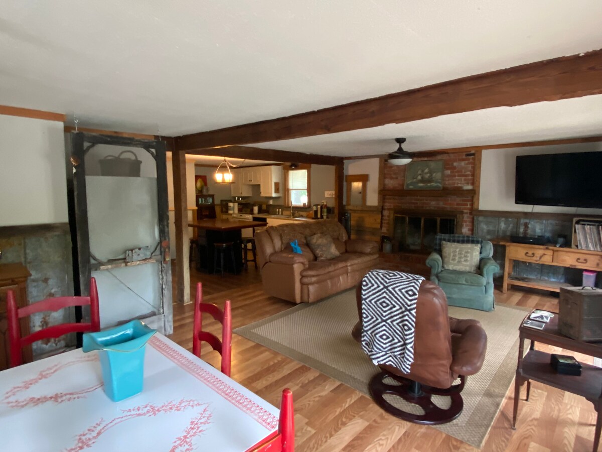 Fai una pausa e rilassati in questa tranquilla cornice di campagna. 3 acri di spazio per distendersi e rilassarsi. Questo agriturismo può ospitare fino a 7 persone. 2 delle camere da letto hanno il proprio angolo cottura e bagni completi. La sezione principale dispone di cucina completa, camera da letto e bagno. L'intera casa dispone di 3 camere da letto, 3 bagni completi e 3 ettari di cortile tranquillo e porticati avvolgenti. Tutte le porte sono collegate, quindi si apre per accogliere una grande famiglia.