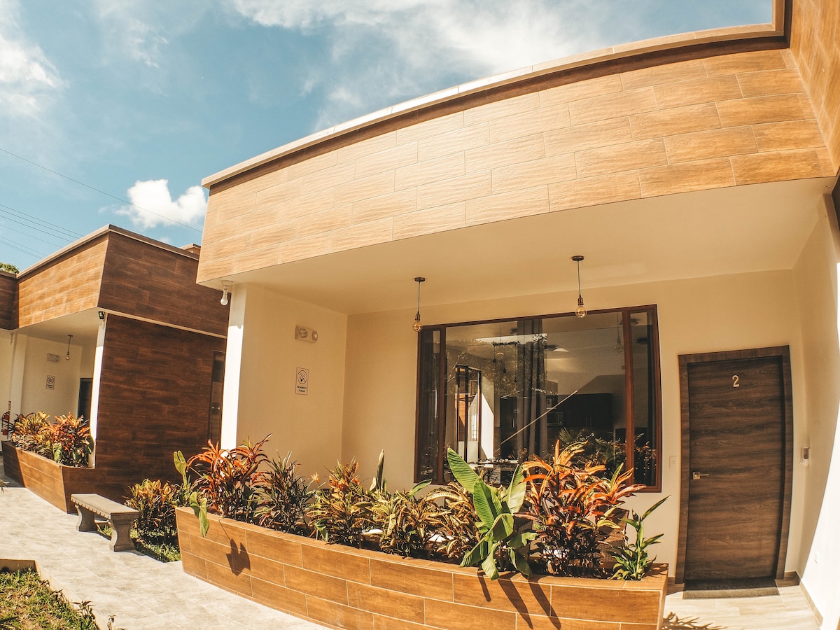 Suite moderna e accogliente con tutti i comfort, ideale per coppie o piccole famiglie, dotata di letto king size e divano letto, Smart TV, cucina completamente attrezzata, bagno moderno con acqua calda e asciugacapelli, soggiorno, balcone con mobili da esterno, Wi-Fi gratuito, garage privato. Posizione privilegiata a soli due isolati dal parco centrale di Mindo, zona tranquilla e vicino a tutte le attrazioni turistiche, ristoranti, farmacia, supermercato, bancomat, autobus, ecc.