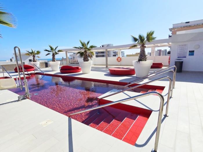 Appartamento ✨ nuovo di zecca a solo 1 minuto dalla spiaggia. 🏊 Piscina condivisa. Letto matrimoniale + ampio divano letto. 🌬️ Aria condizionata, smart TV e WiFi veloce. Cucina 🍽️ completamente attrezzata con lavastoviglie, forno e lavatrice. Terrazza chiusa luminosa. 📍 Ottima posizione vicino al mare, ai negozi e ai ristoranti. 🐾 Animali domestici ammessi. Self check-in. Ideale per soggiorni brevi o lunghi. Bagno 🧼 moderno. Perfetto per coppie, amici o lavoro a distanza.