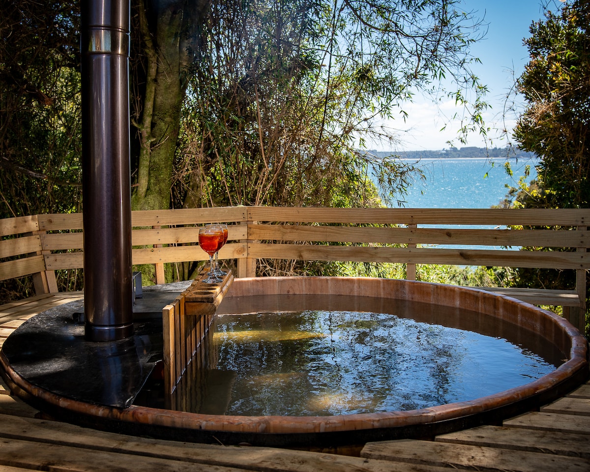 Cottage Jardines de Frutillar. Con una bella vasca.