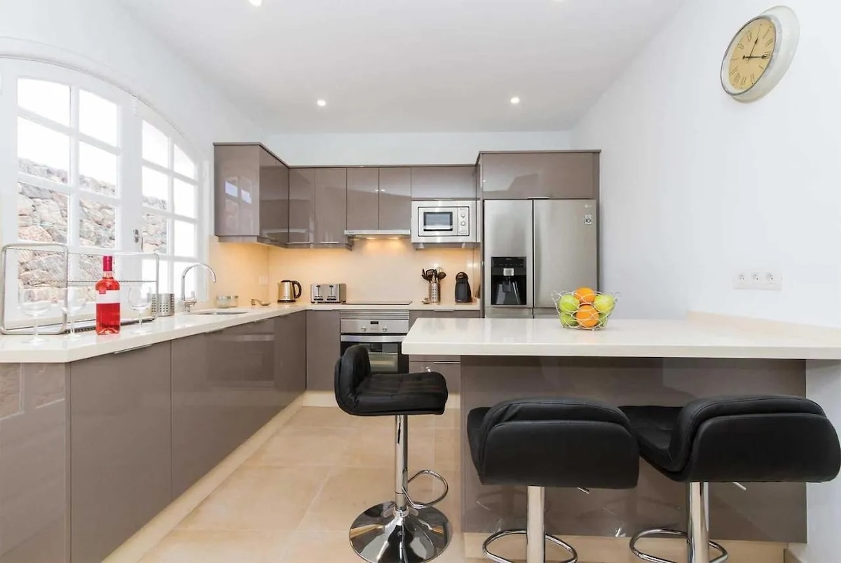 La villa di lusso "CASA MAJOS" è stata costruita per voi come vacanzieri nel 2018 ed è situata in una posizione tranquilla ed esclusiva di Puerto del Carmen (Los Mojones). Puerto del Carmen era un tempo un romantico villaggio di pescatori e anche oggi è probabilmente il posto più bello dell'isola. La casa si trova su una strada privata e non è visibile dall'esterno. Ci vogliono circa 10 minuti a piedi dalla spiaggia, così come dal lungomare con i vostri bar, ristoranti, boutique, ecc.