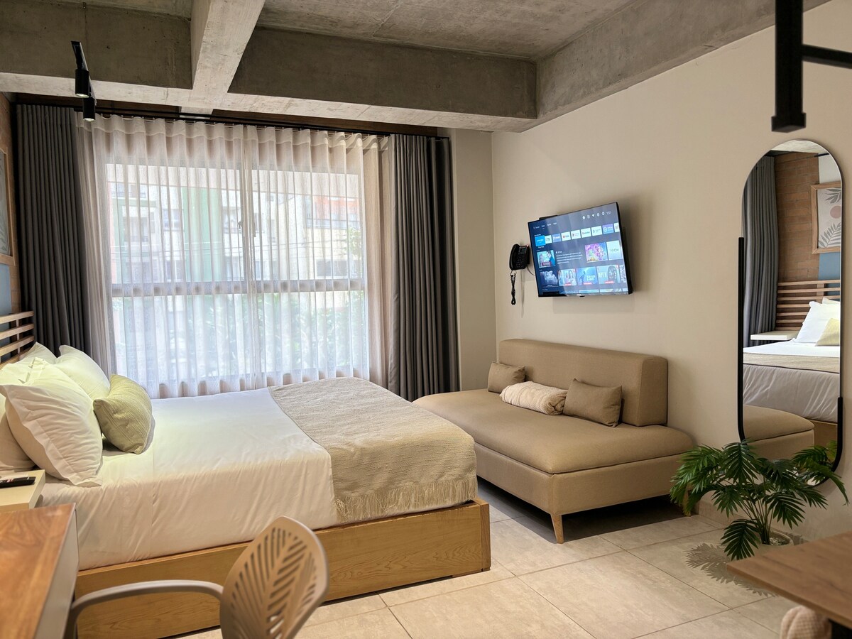 Experience Medellín from this stylish and inviting duplex with a modern urban feel. The bedroom is on the lower level, while the living room, kitchen, and bathroom are upstairs with a comfortable flow between spaces. Street-facing windows fill the home with natural light and fresh air. Located in a walkable, vibrant neighborhood with easy access to public transportation, cafés, supermarkets, and restaurants. High-speed internet makes it ideal for remote work and city explorers alike.