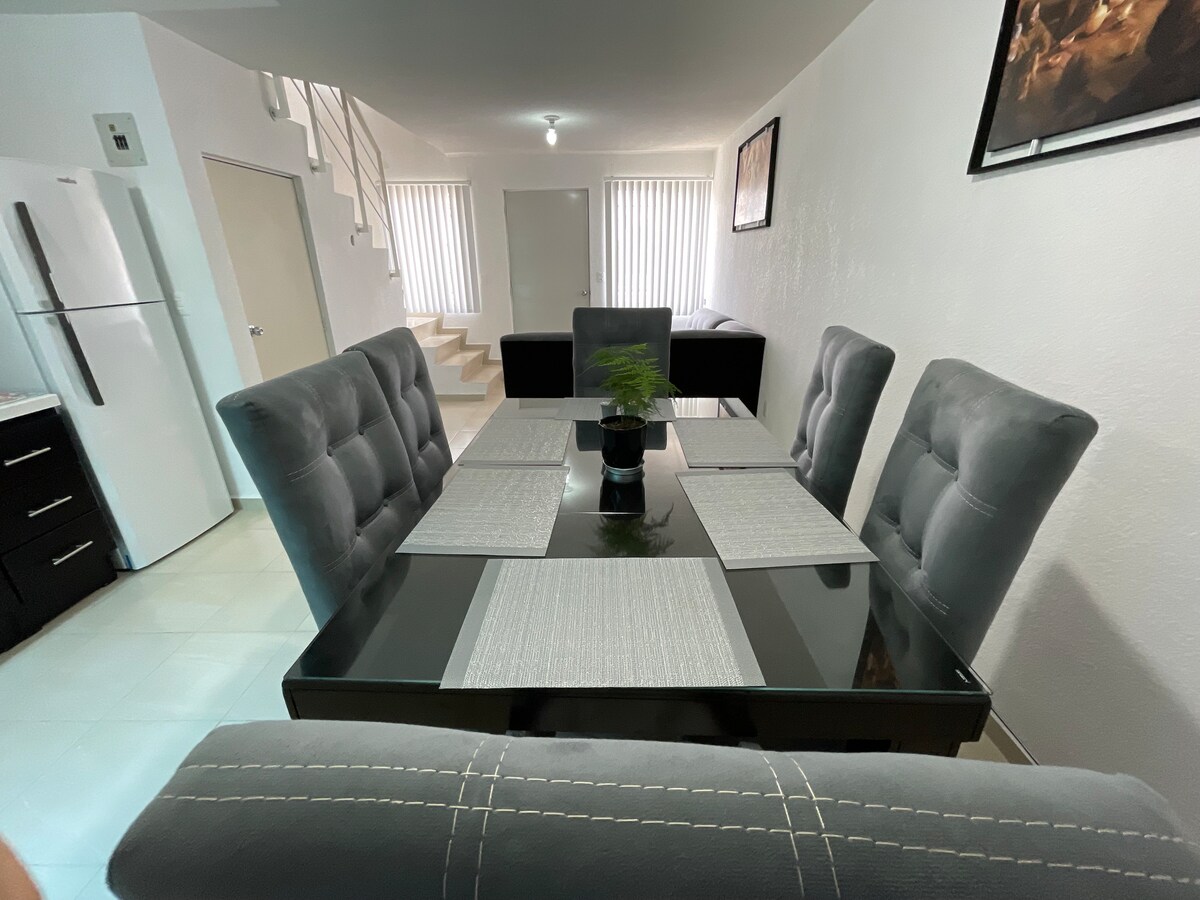 Grazioso appartamento per 4 persone in un complesso recintato vicino all'AIFA (Aeroporto Internazionale Felipe Ángeles), a 3 minuti dall'uscita dell'autostrada Messico-Pachuca e a 15 minuti dall'uscita Arco Norte. È dotato di tutti i comfort di base per il tuo benessere. Troverai un minimarket Oxxo molto vicino all'interno della comunità, e tutti i tipi di servizi e ristoranti all'esterno. L'appartamento si trova al piano terra con un posto auto di fronte (con telecamera di sicurezza). È disponibile il trasporto da/per AIFA