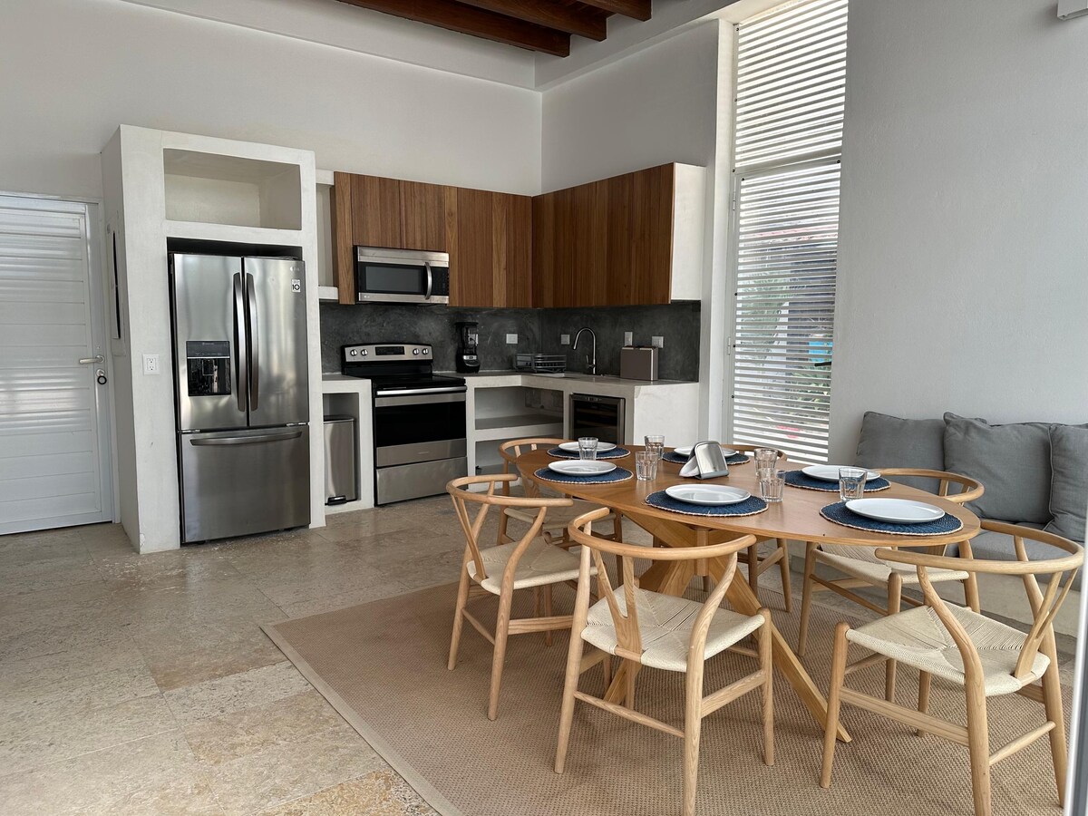 Bella casa sulla spiaggia situata di fronte all'oceano con graziose camere illuminate e ventilate attraverso un patio interno privato con doccia esterna, con e senza aria condizionata, cassaforte. L'attenzione personalizzata per rendere il tuo soggiorno una vacanza indimenticabile.