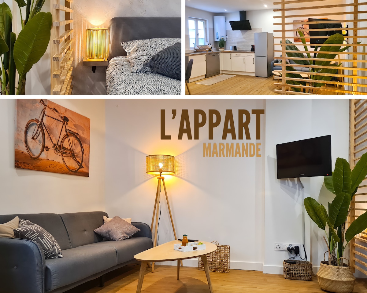 A fully renovated T1 bis apartment in the heart of Marmande, just steps away from the market square with public transport and shops in immediate proximity. Enjoy the green spaces of La Filhole, which are directly accessible on foot from the apartment. Parking space available 20 meters away.