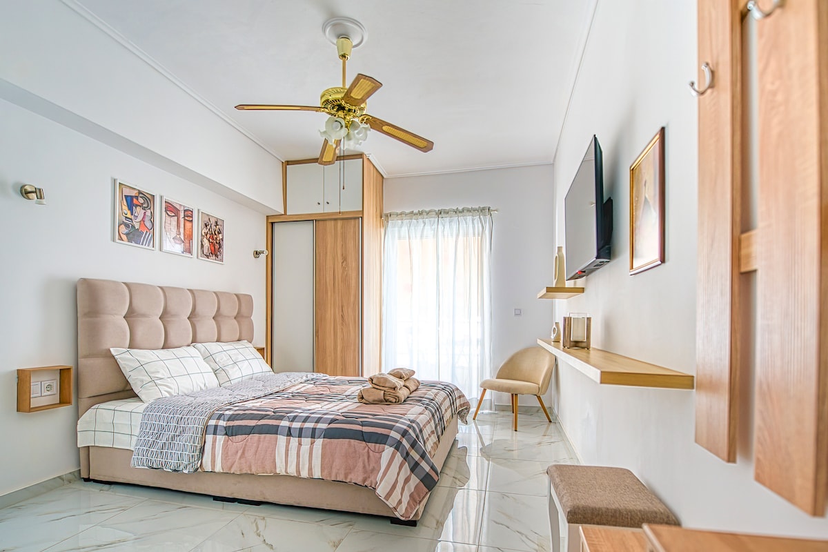 Luminoso e tranquillo con 1 camera da letto | Vicino alla spiaggia e al centro di Loutraki