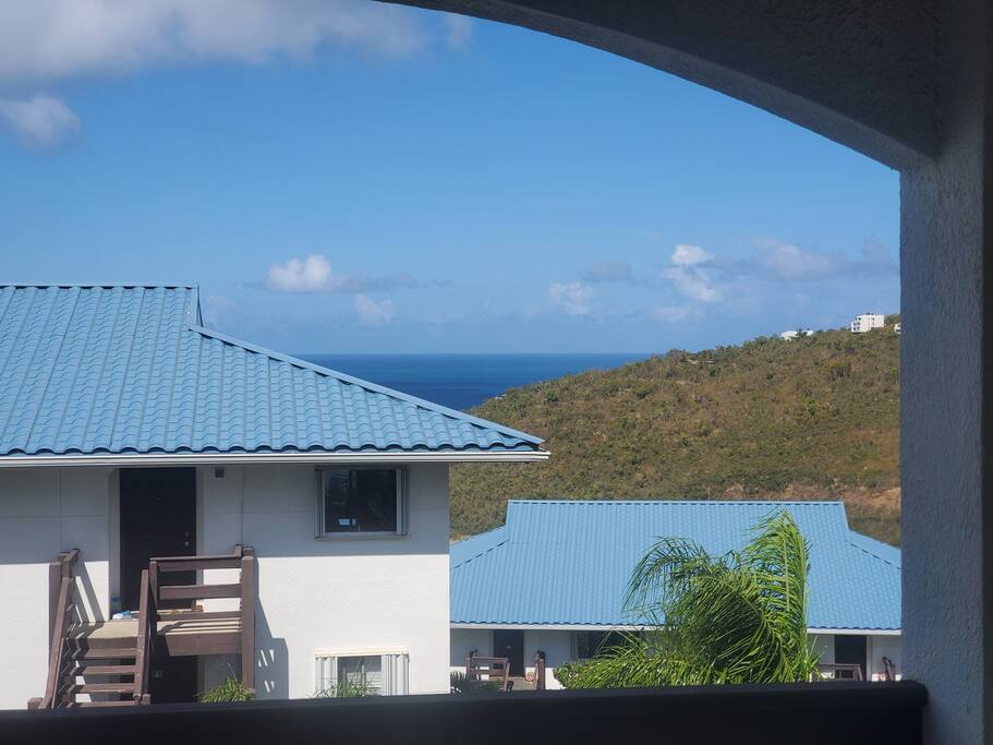 Welcome to your retreat with panoramic ocean views located in Mahogany Run, 5 mins from Magen's Bay Beach. Enjoy spectacular views of the ocean from every room of the condo. This bright and airy condo is equipped with a plush king-size bed, a fully equipped kitchen, and a bathroom featuring a walk-in shower. Spend the days at one of the island's beaches, snorkeling, hanging out by the pool, or exploring downtown Charlotte Amalie! We HIGHLY recommend renting a car to get around the island
