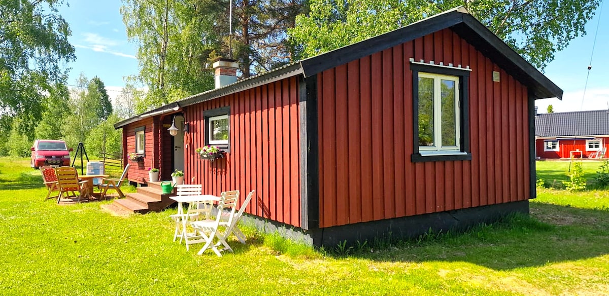 Baita di legno colorata e accogliente lungo il fiume a Kangos