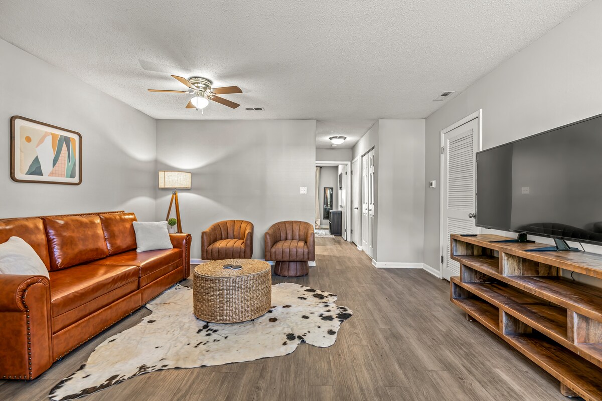 Entra in questa elegante oasi con 1 camera da letto e 1 bagno nella tranquilla e pittoresca South Durham. Promette un rifugio rilassante a soli cinque minuti dalla vivace zona del centro, da fantastici ristoranti, negozi, attrazioni emozionanti e luoghi di interesse naturali. Il design moderno, le strutture comuni e un ricco elenco di servizi ti lasceranno a bocca aperta. Camera ✔ da letto con letto queen-size confortevole ✔ Zona giorno rilassante ✔ Cucina completa ✔ Spazio di lavoro ✔ Smart TV Wi-Fi ✔ ad alta velocità Servizi ✔ della community (piscina, palestra, barbecue, lounge, parcheggio) Scopri di più qui sotto!