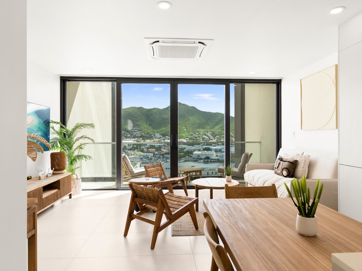 Svegliati con la magnifica vista panoramica del laguna all'ultimo piano, ringiovanisci il tuo corpo con un tuffo rinfrescante nella piscina a sfioro privata sul tetto con caffè o bevanda tropicale. Fai una passeggiata di 10 minuti fino alla famosa Mullet Bay Beach e prendi qualche croissant appena francese vicino alla piazza. Dopo il tramonto, goditi i numerosi bar e ristoranti del quartiere o raggiungi in 5 minuti di auto da Maho, dove troverai una vasta gamma di ristoranti, casinò e club o Porto Cupecoy per un luogo romantico.