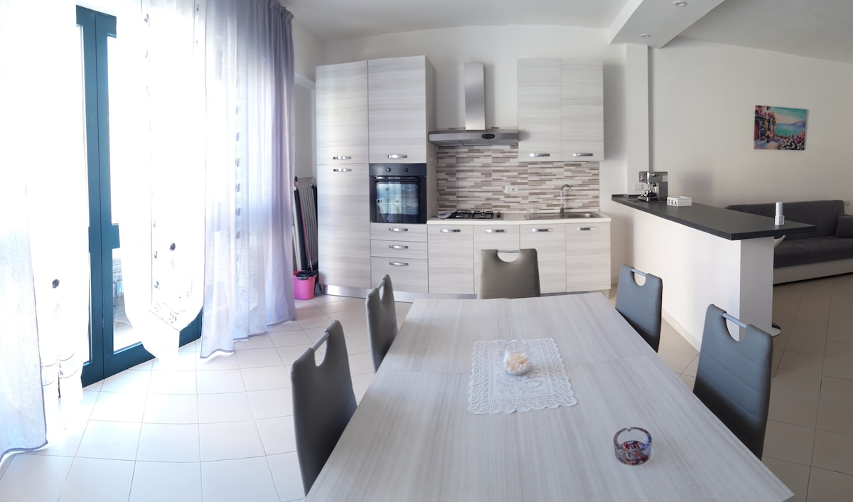 Dimentica ogni preoccupazione in questa ampia oasi di serenità. Rilassati e ricaricati in quest'oasi di quiete ed eleganza vicino al mare. Appartamento completamente attrezzato di tutti i confort dispone di aria condizionata, wifi, Smart tv con Netflix, bbq e parcheggio privato. Due Camere da letto con letto matrimoniale e due comodissimi bagni, nel soggiorno un comodissimo divano letto e una grande cucina. bellissimo spazio nella veranda privata con bbq, lettini e doccia esterna.