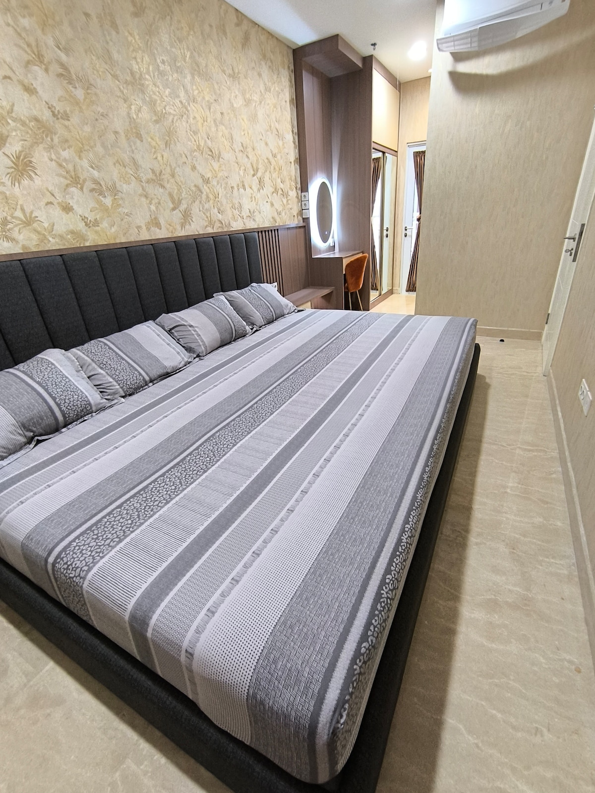 Appartamento recentemente ristrutturato a Podomoro City Deli Medan Offre un soggiorno di lusso con un design accogliente e confortevole. Troverai un'affascinante vista sulla città direttamente dalla comodità della tua finestra e del balcone. Situato nel centro della città di Medan. • Accesso diretto al centro commerciale Podomoro direttamente dalla hall dell'appartamento • Di fronte al JW Marriot Hotel • Sun & CP a 8 minuti • Splendida vista sulla città • Arredamento di lusso completo • 2 grandi Smart TV (con Netflix, YouTube, ecc.) • Wifi ad alta velocità • Purificatore d'aria