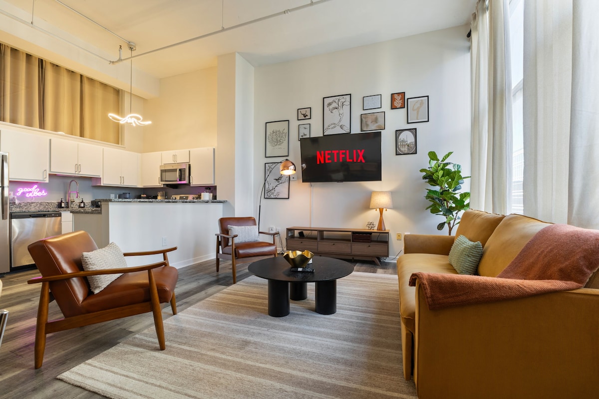 Benvenuti in questo spazioso appartamento in stile moderno al 6° piano con ottima luce naturale, completamente arredato con tutti i comfort: ☞ Pulito in modo professionale tra un ospite e l'altro ☞ Self check-in senza contatto ☞ Parcheggio gratuito in loco (risparmia 44 USD al giorno prenotando con noi) ☞ Collegato all'Indianapolis Skywalk ☞ A pochi passi da tutto ciò che il centro ha da offrire ☞ Cucina attrezzata con caffè e tè ☞ Smart TV Roku da 60 pollici ☞ TV Roku nelle camere da letto ☞ Spazio di lavoro ☞ Lavatrice + asciugatrice ☞ Wifi da 80 + MBPS ☞ Palestra 24 ore su 24 ☞ Materassi comodi