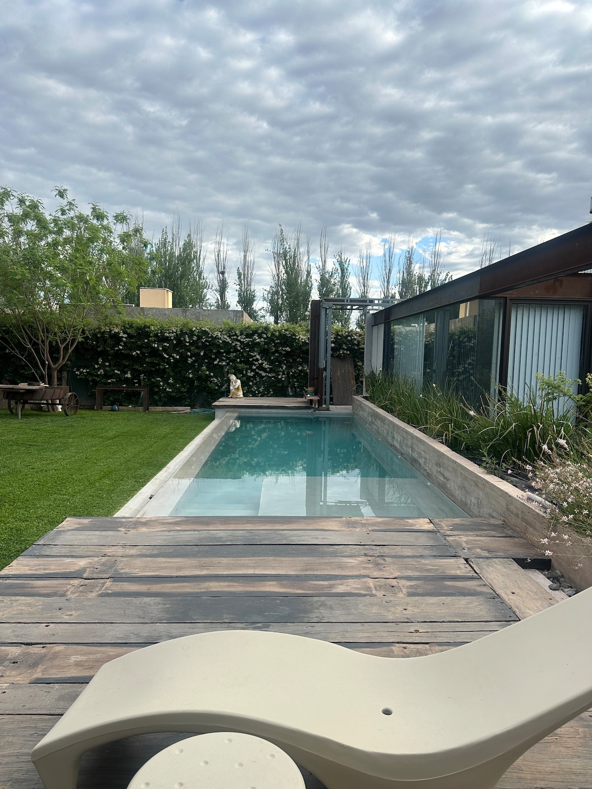 La casa si trova in una posizione eccellente a Chacras de Coria circondata da un bellissimo giardino con alberi e un vecchio vigneto. Dispone di una piscina ad uso esclusivo per gli ospiti e ingresso indipendente tramite garage. Dispone di un posto per parcheggiare l'auto. La posizione è ideale per visitare le vicine cantine, uscire a cena nella zona o visitare il centro commerciale Palmares che si trova a 5 minuti di auto. È una zona tranquilla e il quartiere ha la sorveglianza durante la notte.